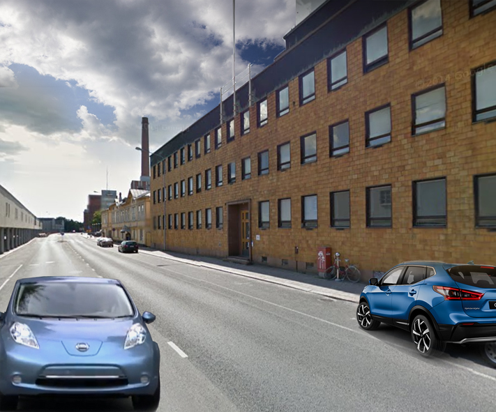 Vastapäätä on vanhan köysitehtaan huikean pitkä rakennus. Vieressä on kuuluisan Minerva-asuntosakeyhtiön uusi ja vanha asuintalo.
